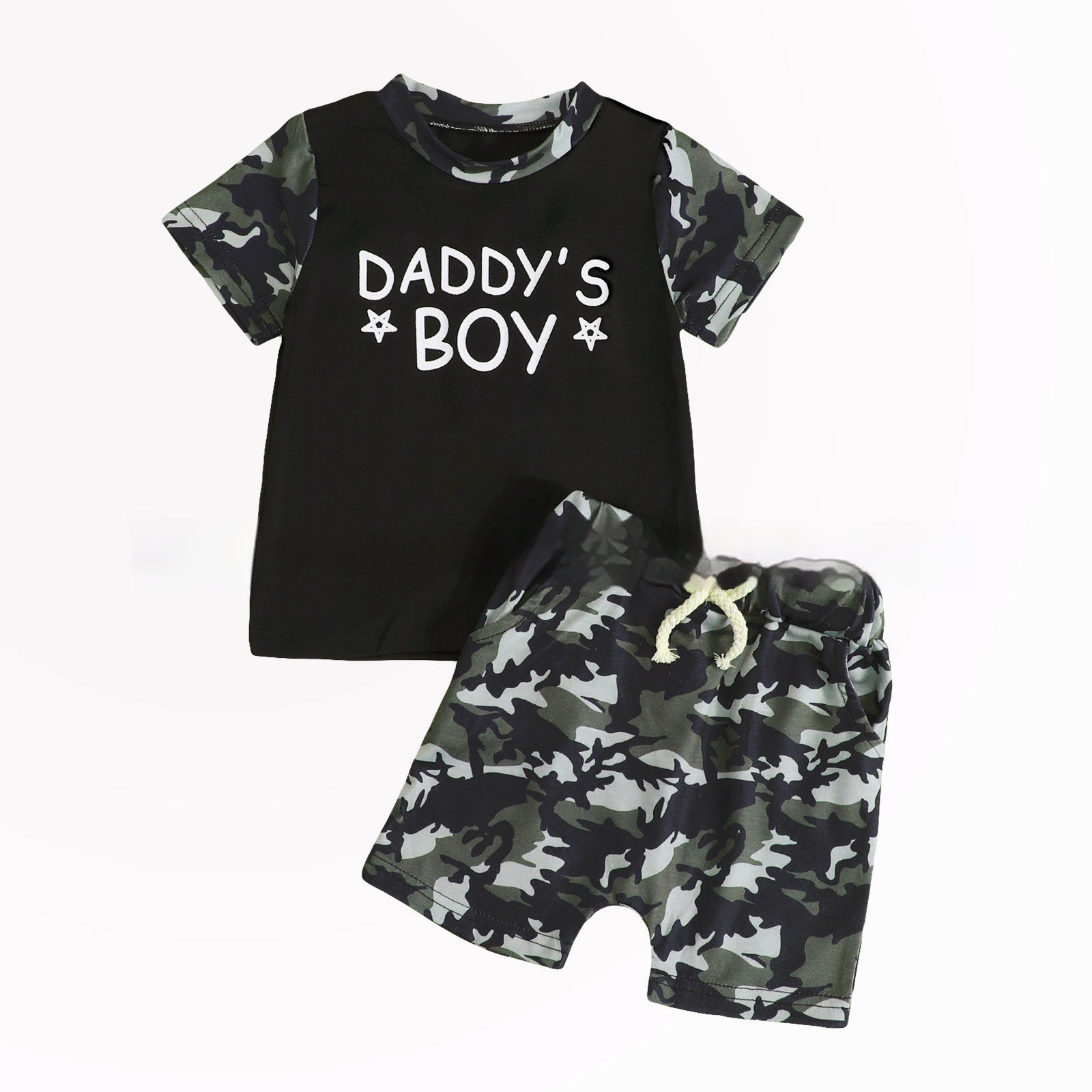 Boy's Camouflage T-shirt And Shorts Two-piece Set