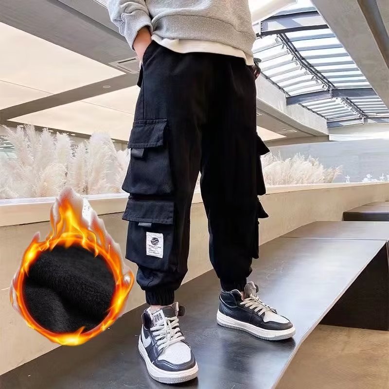 Men's Medium And Large Children's Multi-bag Fleece Ankle-tied Casual Working Pants Tide