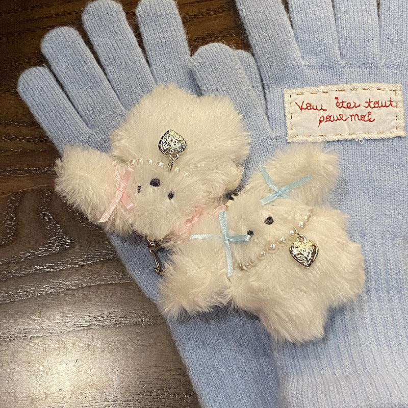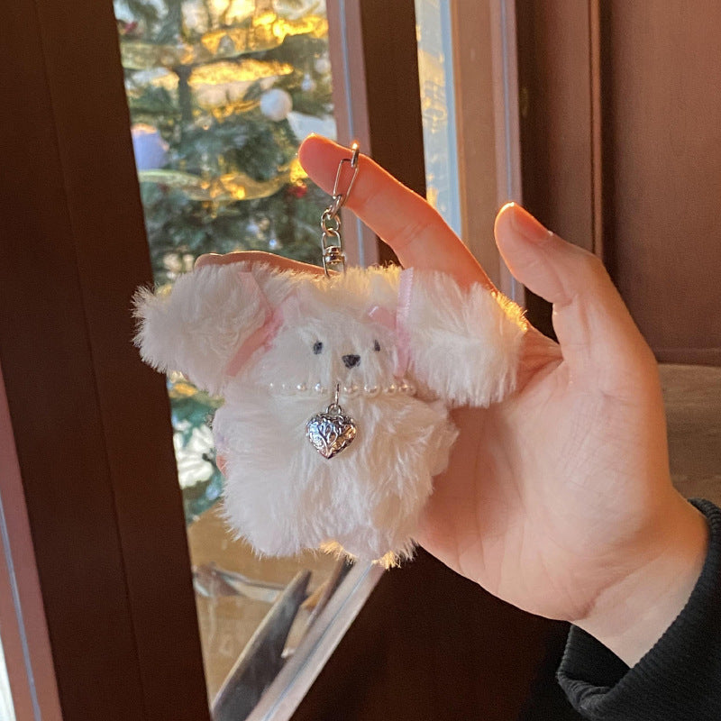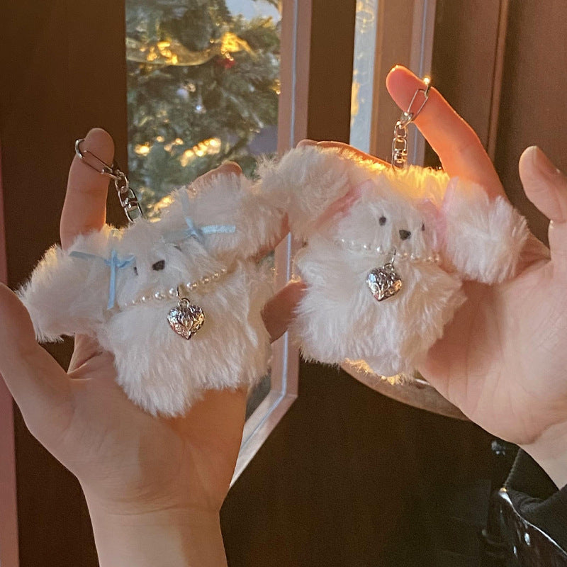 Niche Girl Heart Ribbon Pearl Bow Bunny Keychain Plush Pendant