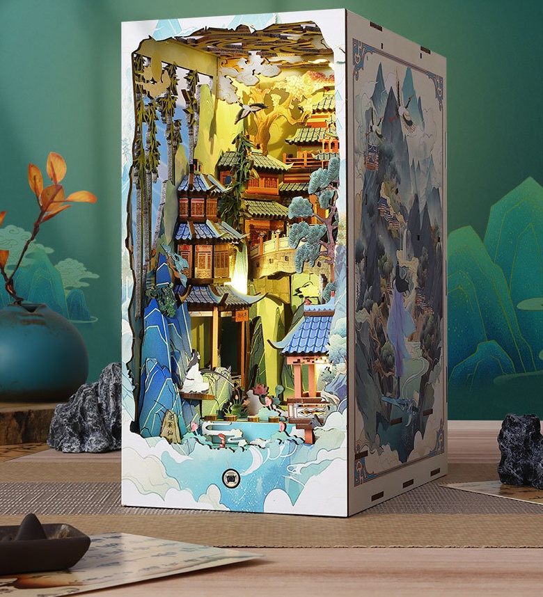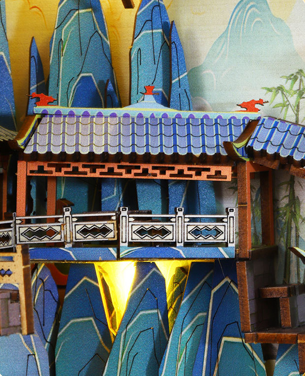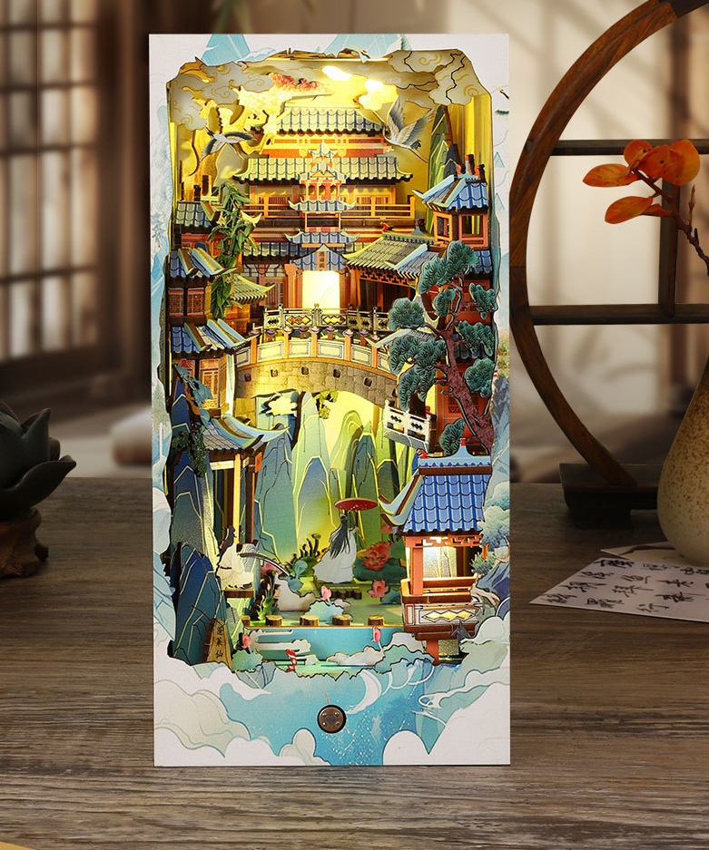 Penglai Fairyland Cottage Three-dimensional Book Stand Handmade Model