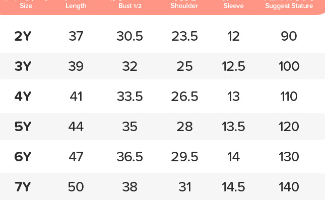 Suitable Heights: 2Y (90 cm), 3Y (100 cm), 4Y (110 cm), 5Y (120 cm), 6Y (130 cm), 7Y (140 cm)