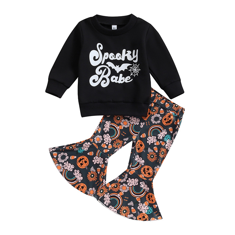 Letter Long Sleeve Sweater Bell-bottom Pants Suit