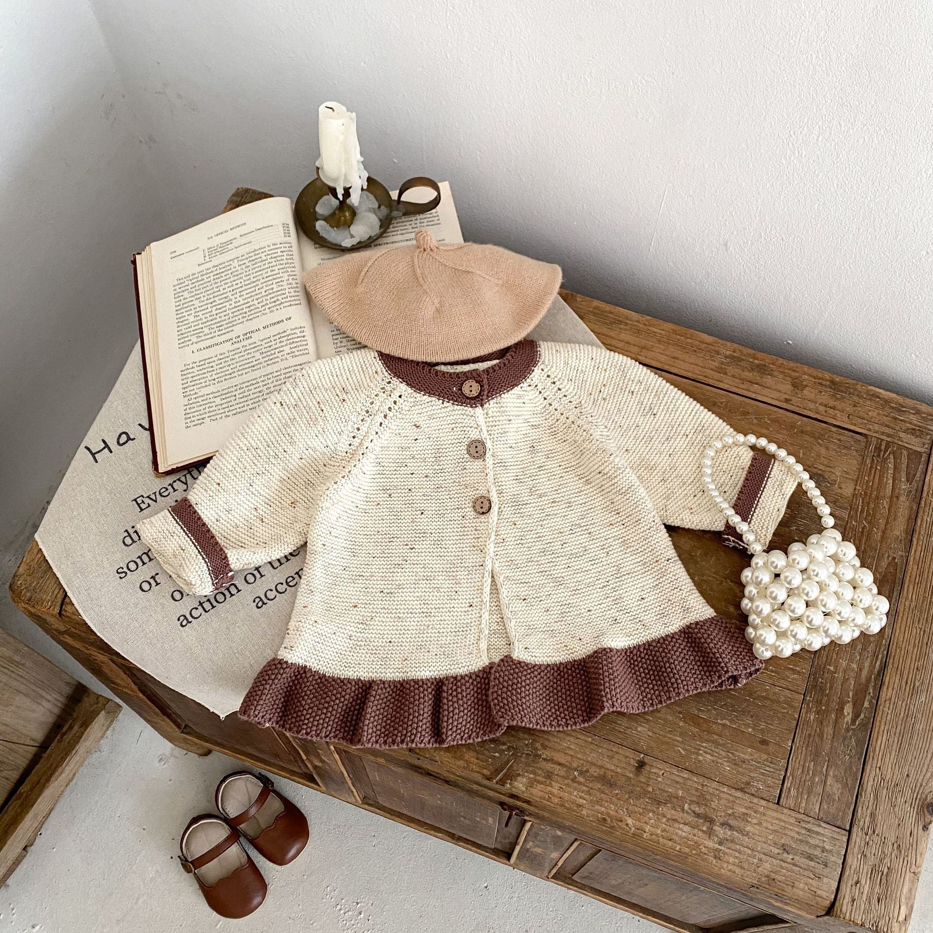 Baby Dot Yarn Ruffled Knitted Cardigan Coat Knitted Bell-bottom Pants