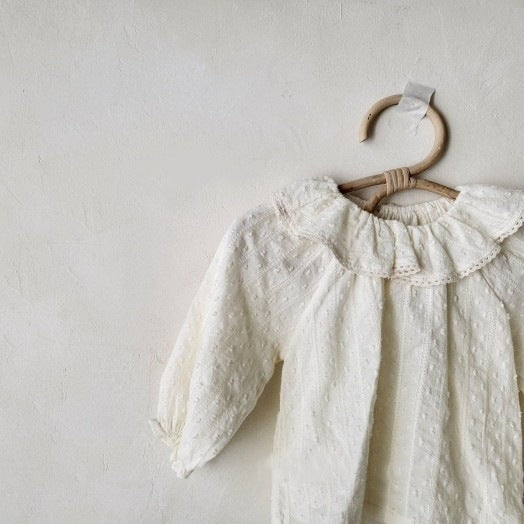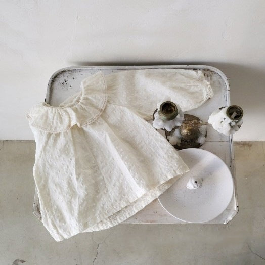 Color: Milky White cut flower polka dot lace ruffle collar shirt