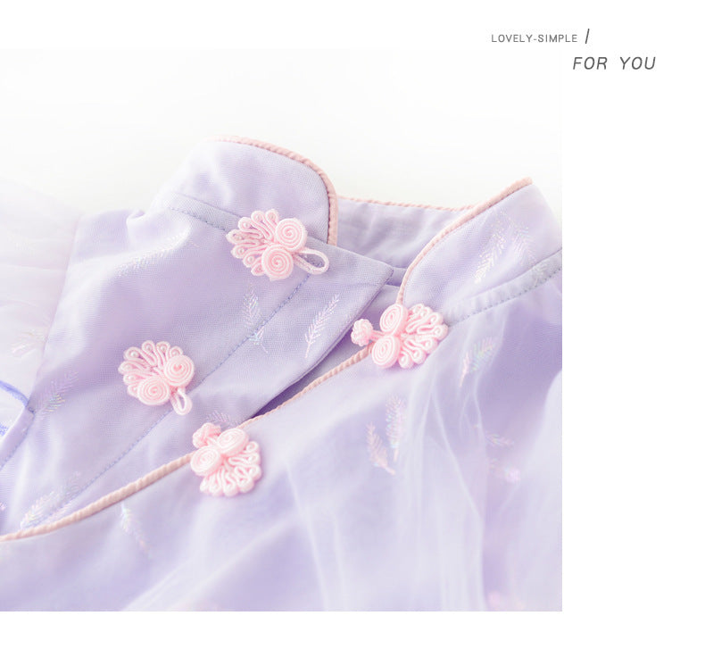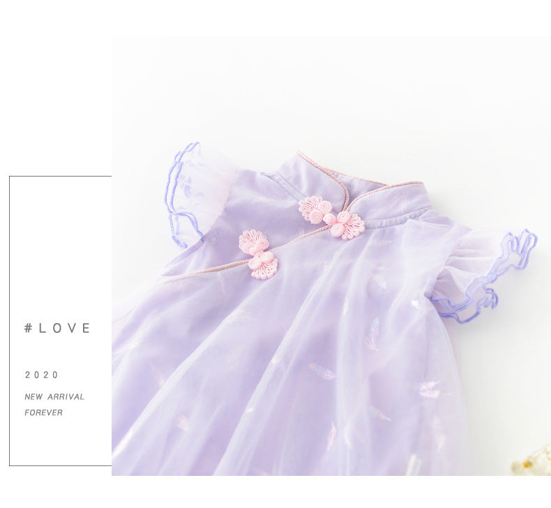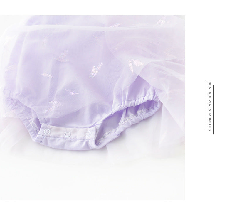 Baby Girl's Antique Style Buckle Mesh Feather Triangle Rompers Infant Onesie Dress