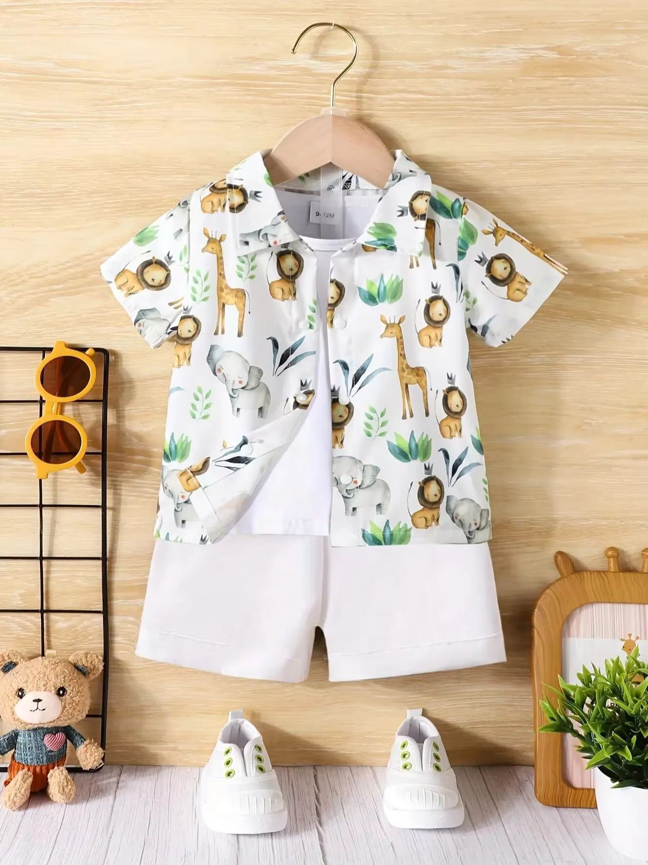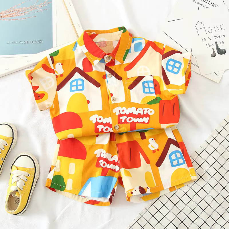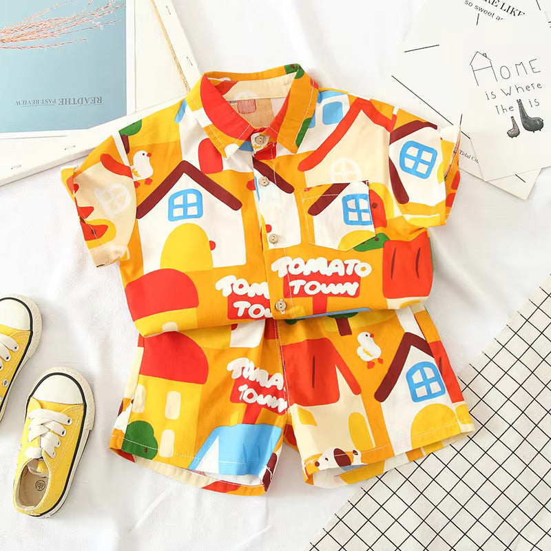 Baby Short Sleeve Shorts Cardigan Two-piece Set Animal Dinosaur Print