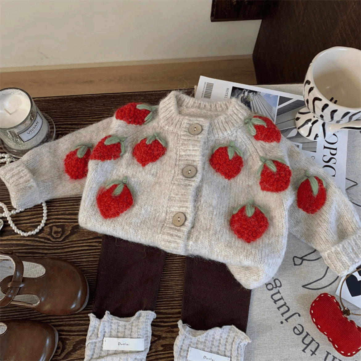 Baby Strawberry Knitted Coat Cardigan Two-piece Set