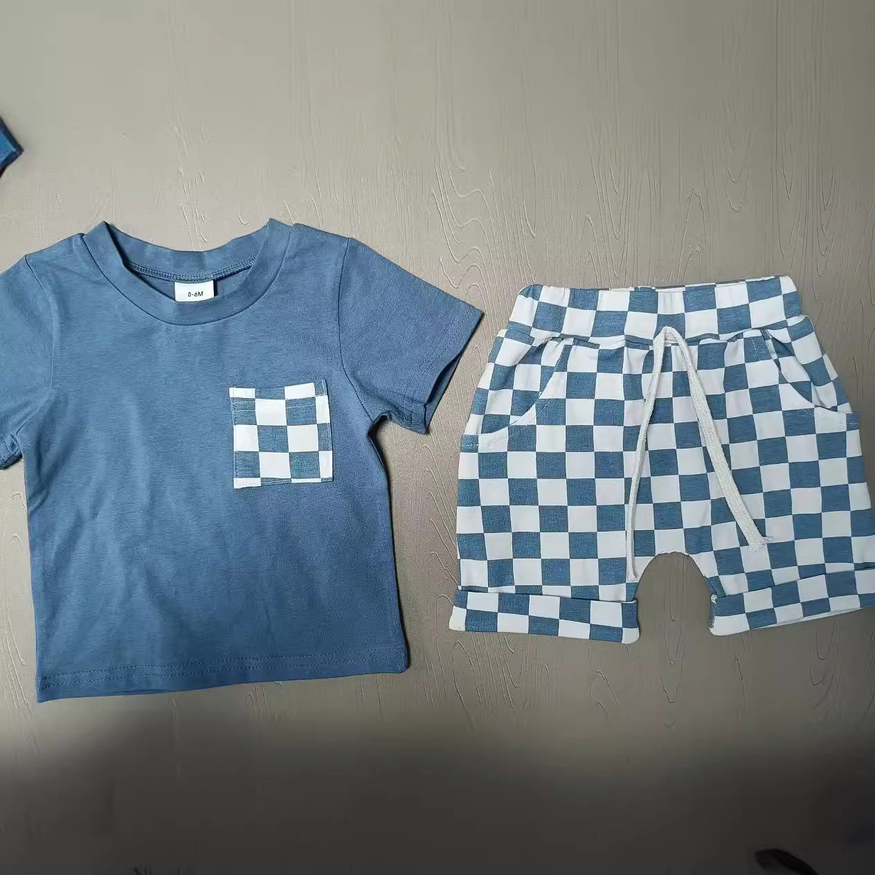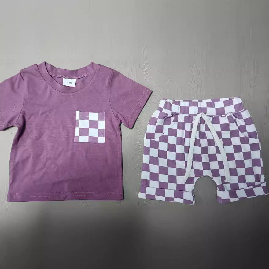 Baby's Casual Short-sleeved Plaid Shorts Suit