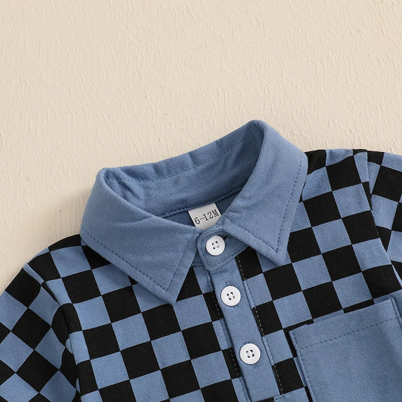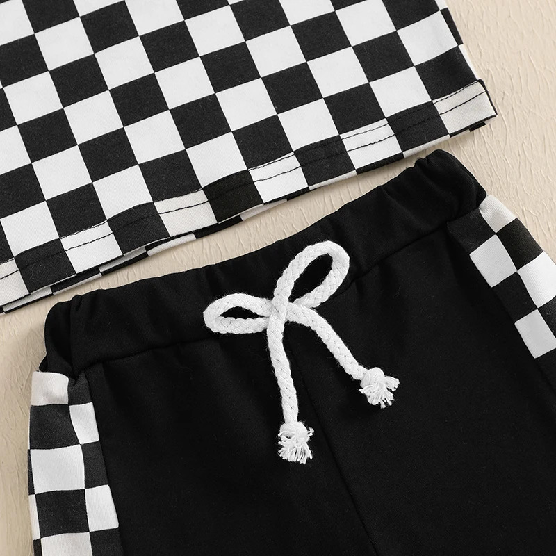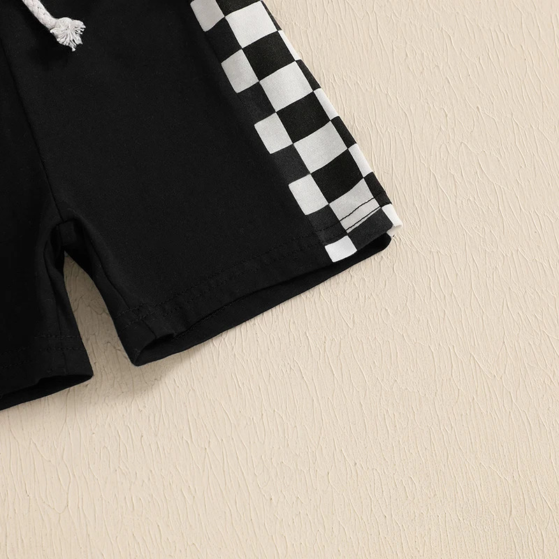 Boys' Lapel Plaid Short Sleeve T-shirt Shorts Set