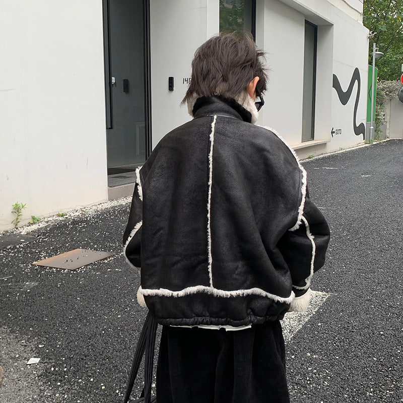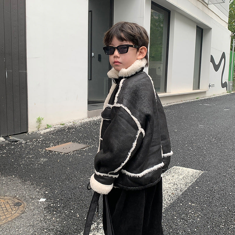 Boy's Leather Jacket Fleece Padded Coat Autumn And Winter Clothing