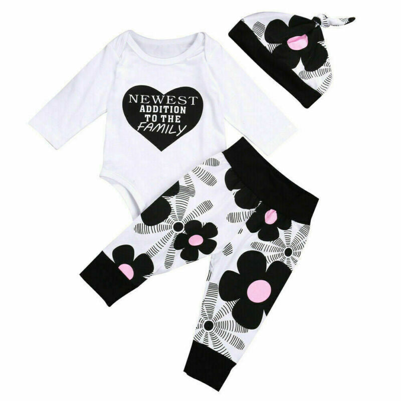 Children's cotton long-sleeved heart-shaped printing three-piece suit