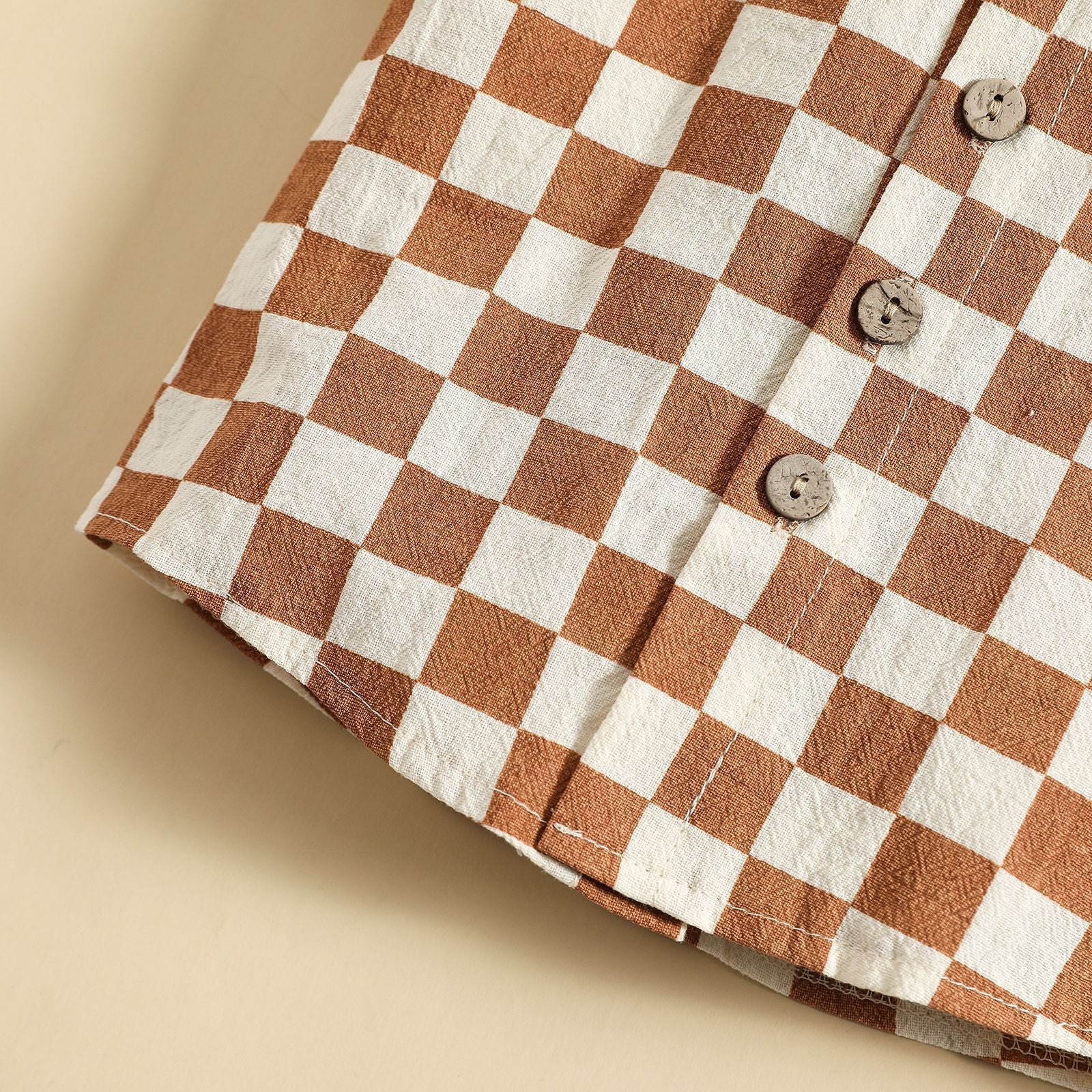 Cotton And Linen Short Sleeve Lapel Polo Shirt Two-piece Set