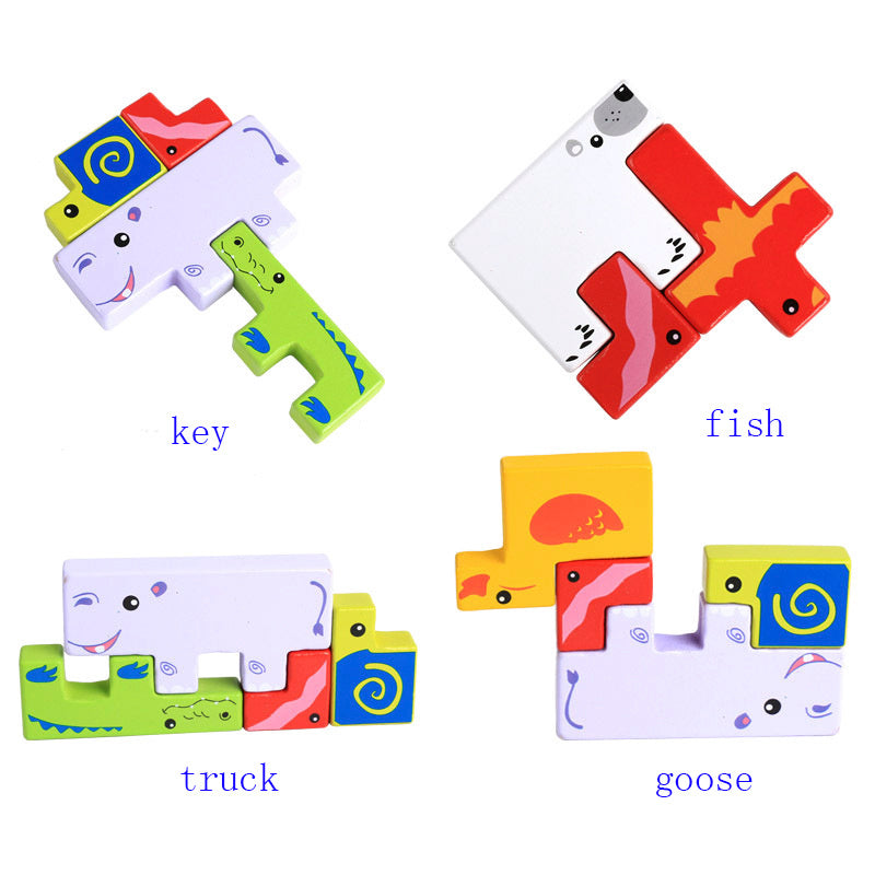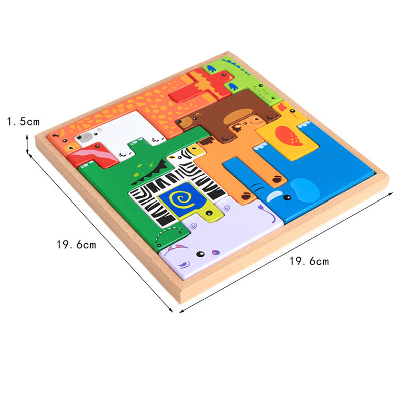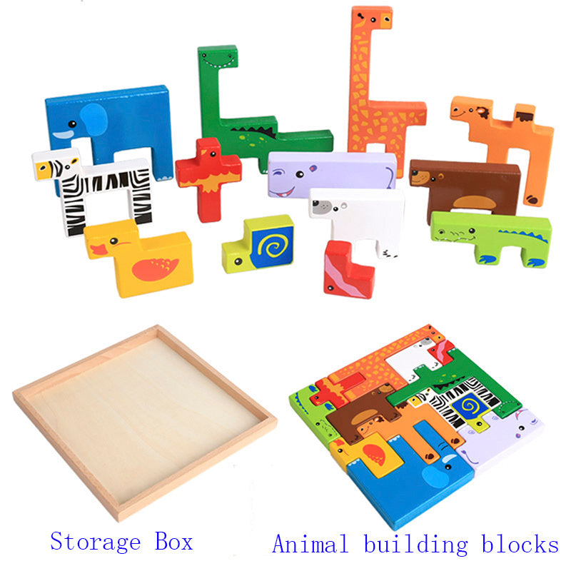 Wooden Tetris building block puzzle three-dimensional animal 3456-year-old children's educational early education toy male and female baby