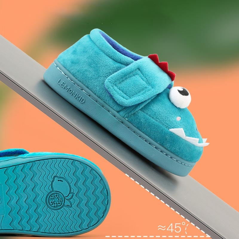 Cute Children's Home Plus Velvet Non-slip Bag Heel Slippers