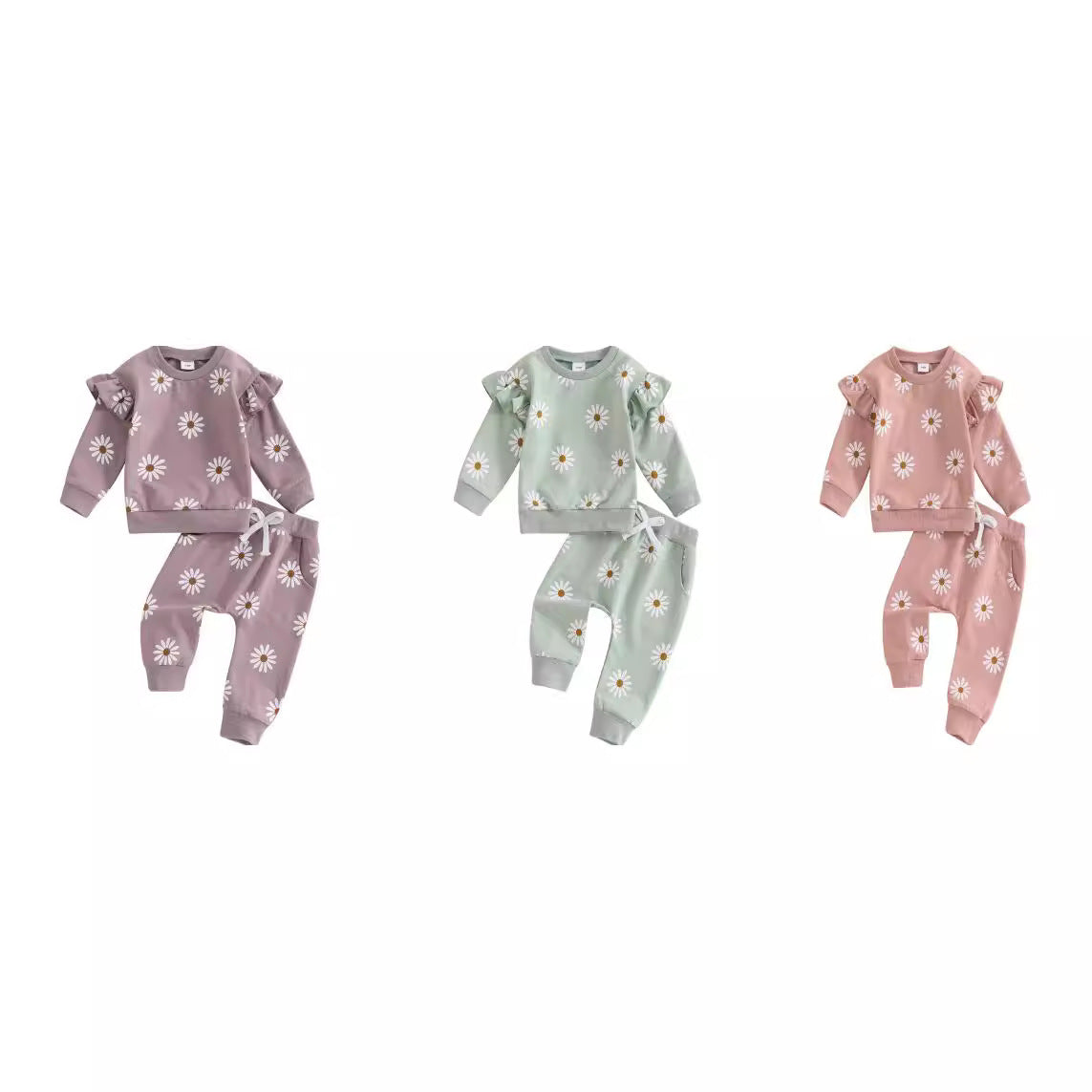 European And American Little Daisy Printing Long Sleeve Trousers Suit