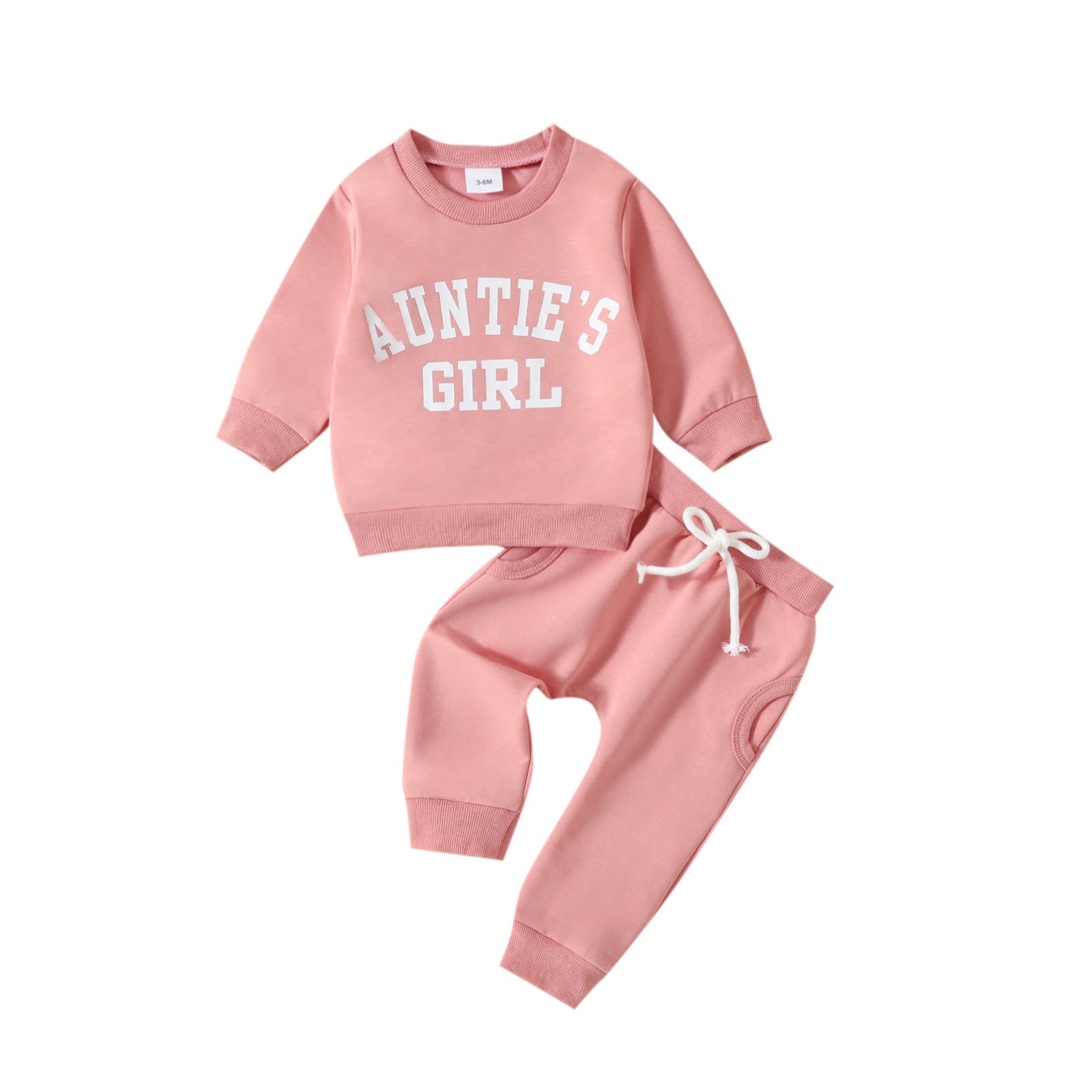 Girls' Printed Solid Color Hoodie Trousers Casual Two-piece Suit