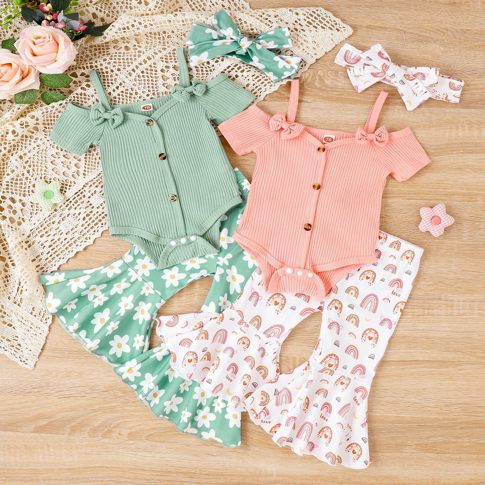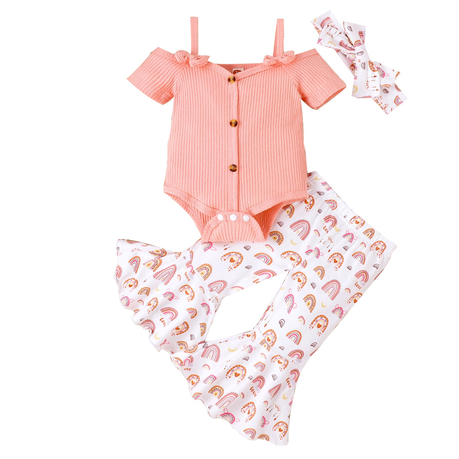 Girls' Short-sleeved Shirt Bell-bottom Pants Three-piece Set