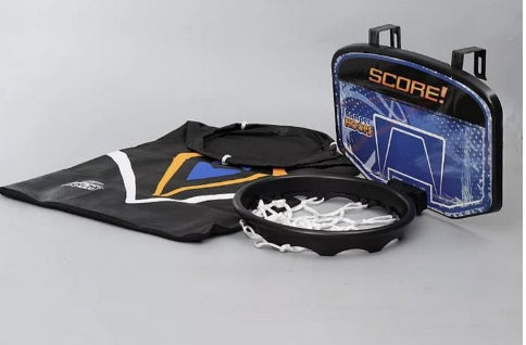 It is a 2-in-1 door basketball basket with a removable laundry bag
