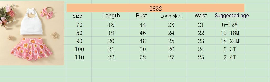 Ins Girls' New Solid Color Sling Top Flower Skort Suit