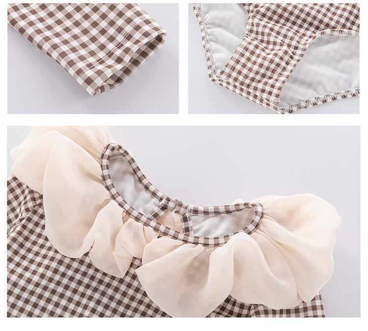 Long Sleeve One-piece Flower Collar Swimsuit For Girls