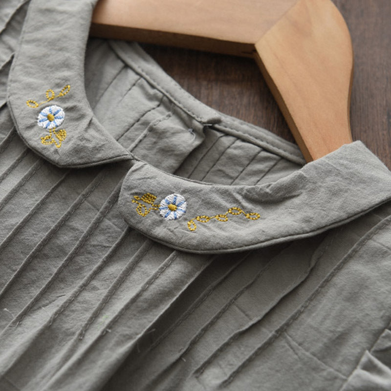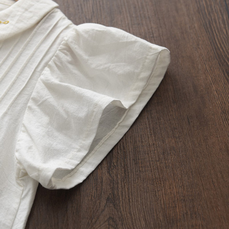 Princess Dress Flying Sleeves Embroidered Doll Collar Solid Color
