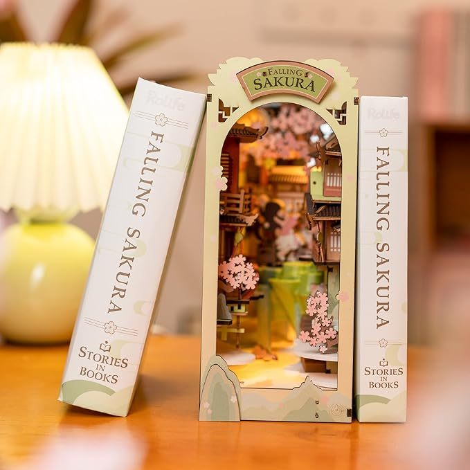 ROBOTIME Rolife DIY Book Nook Kit Bookend Stand Bookshelf Insert Bookcase Miniature Doll House Light 3D Puzzles TGB01-09