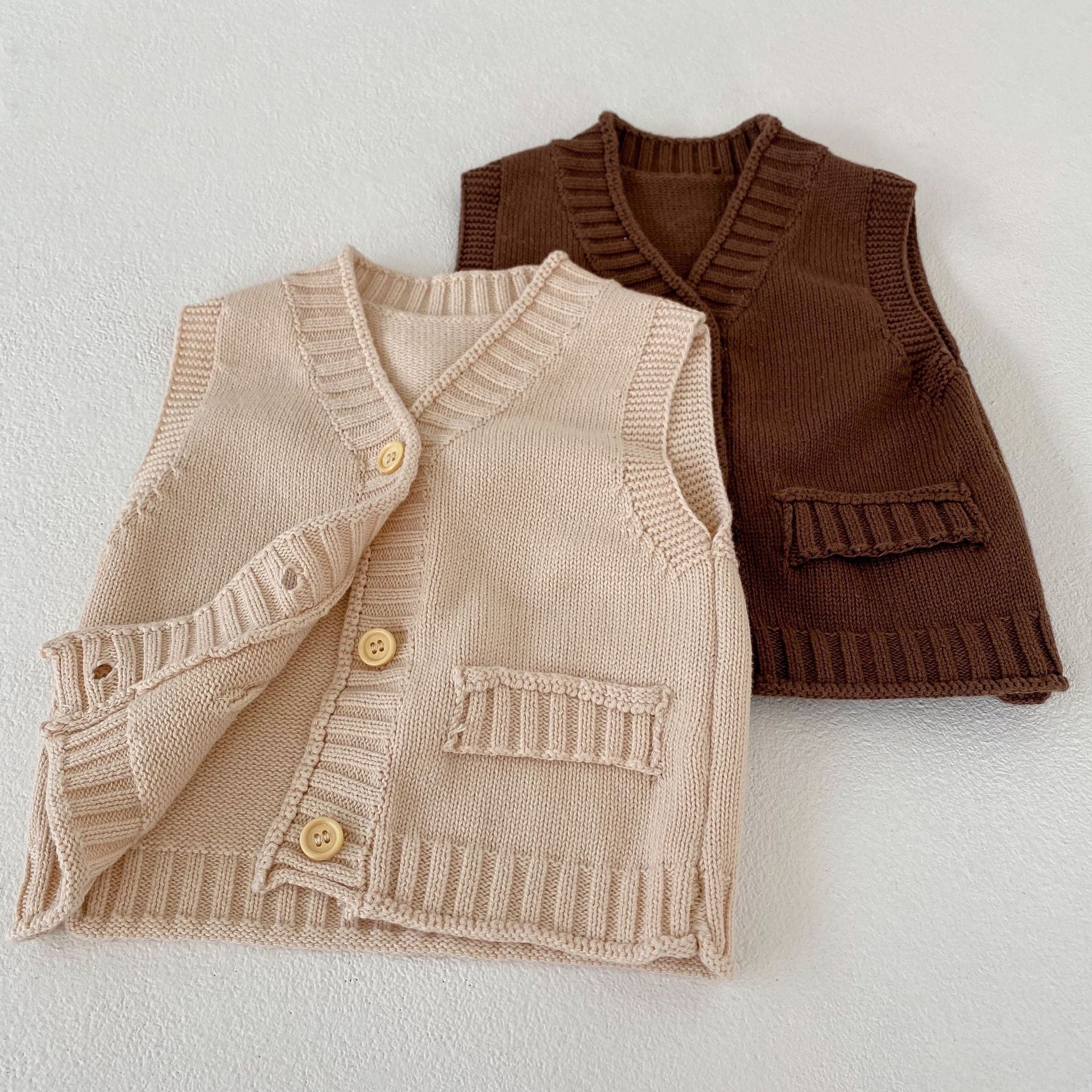 V-neck Cardigan Cotton Knit Sweater Vest Coat