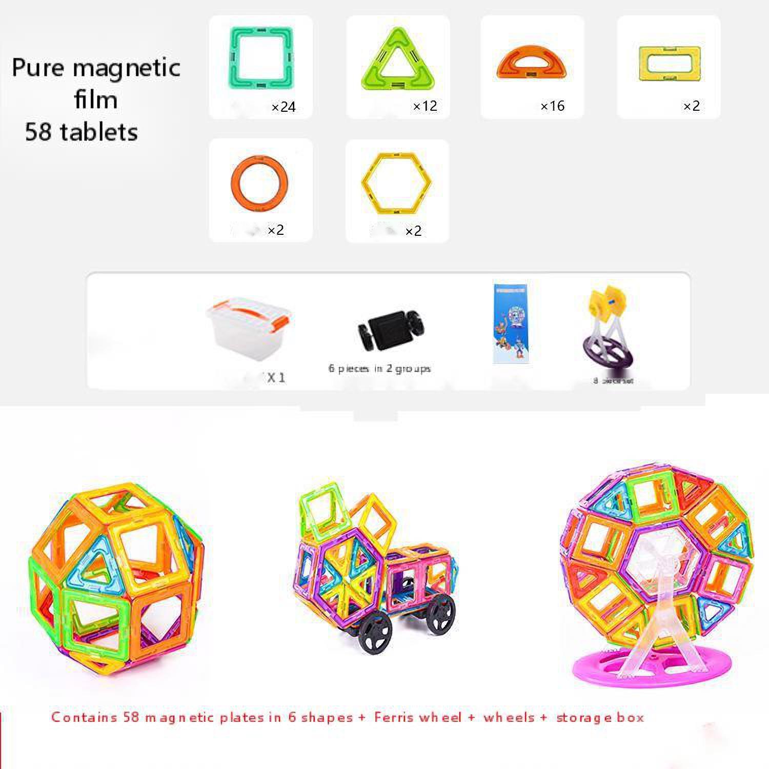 Including 5 shapes of 46 magnetic plates + wheels + storage box