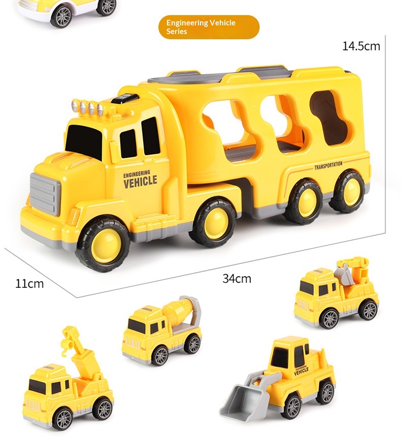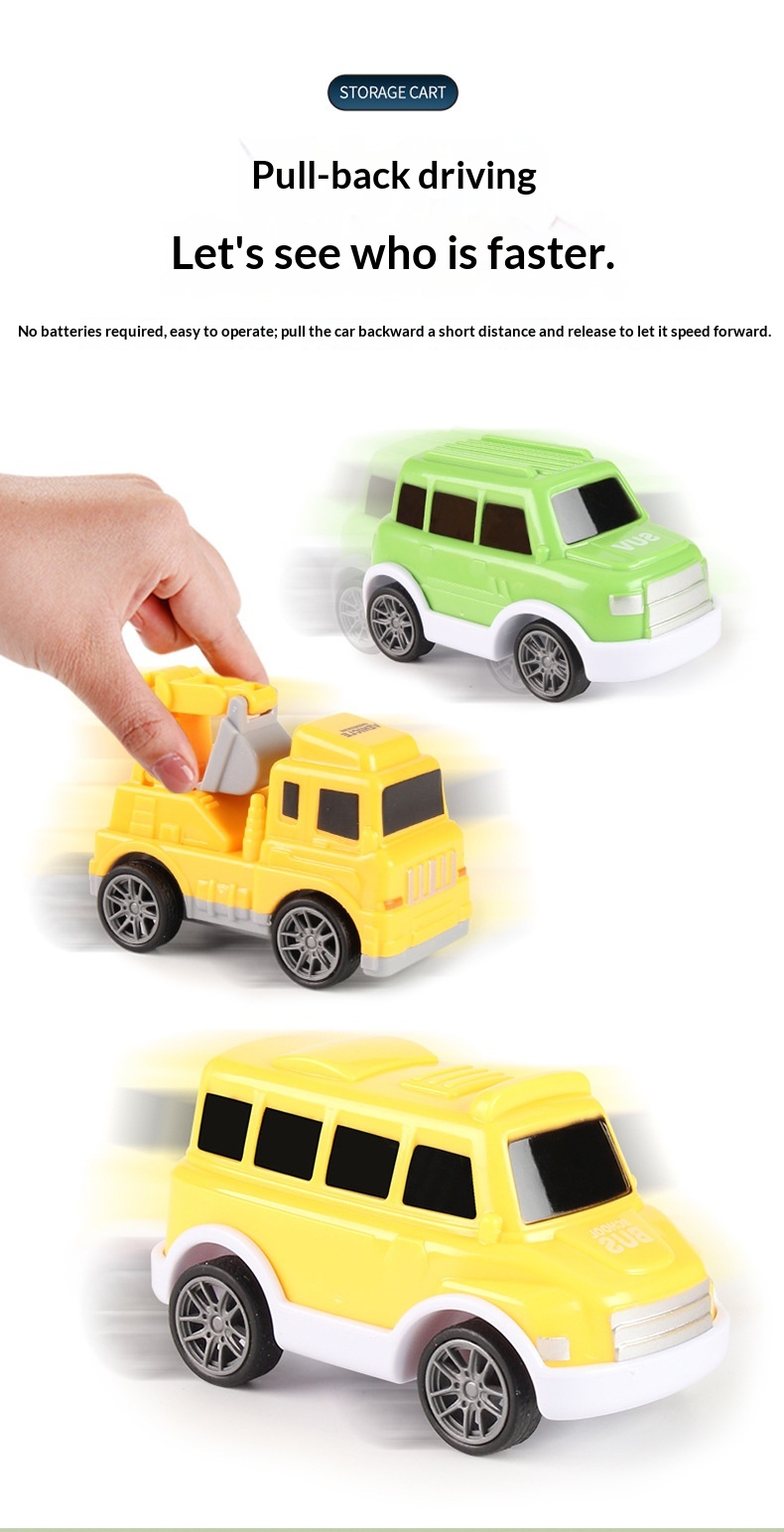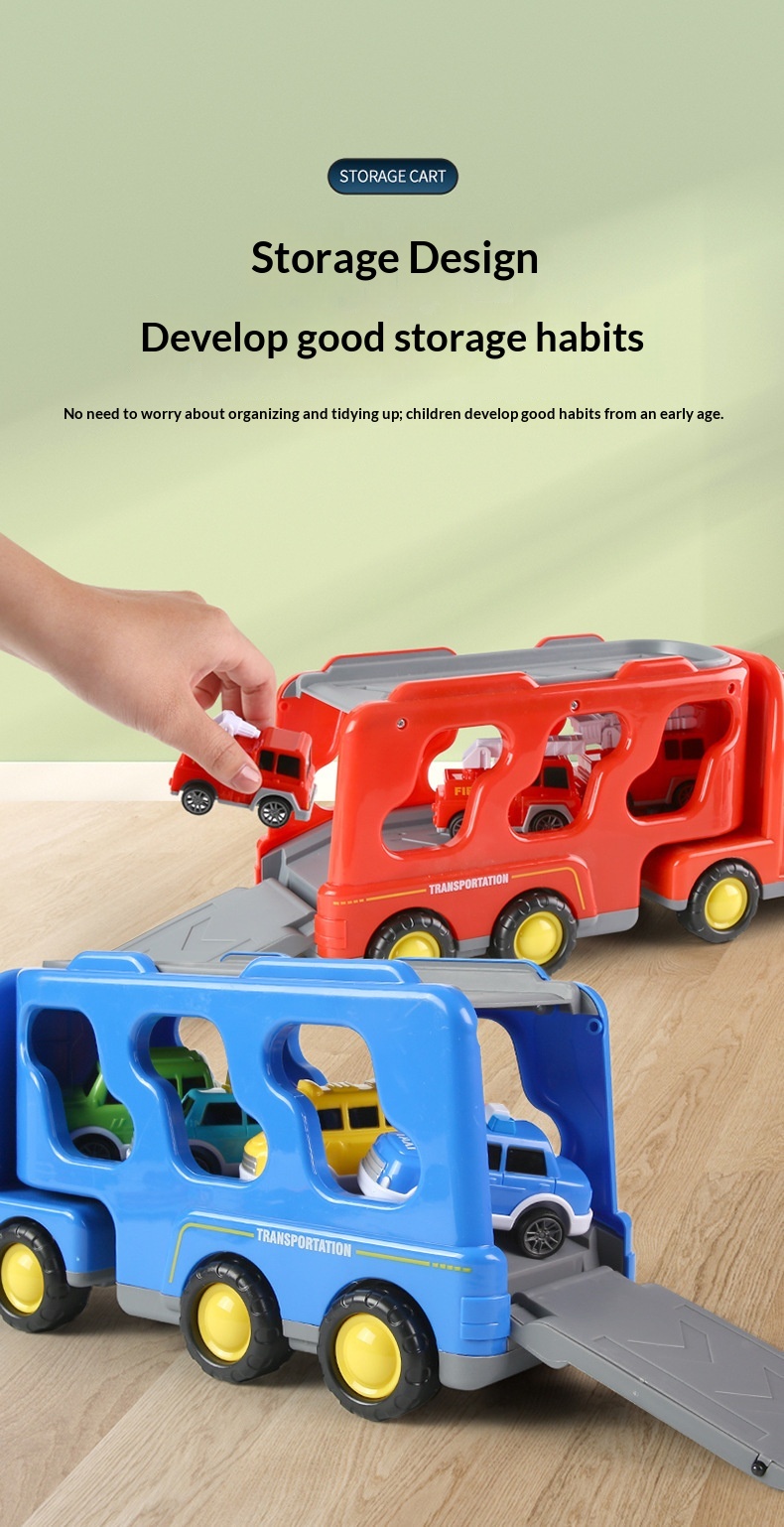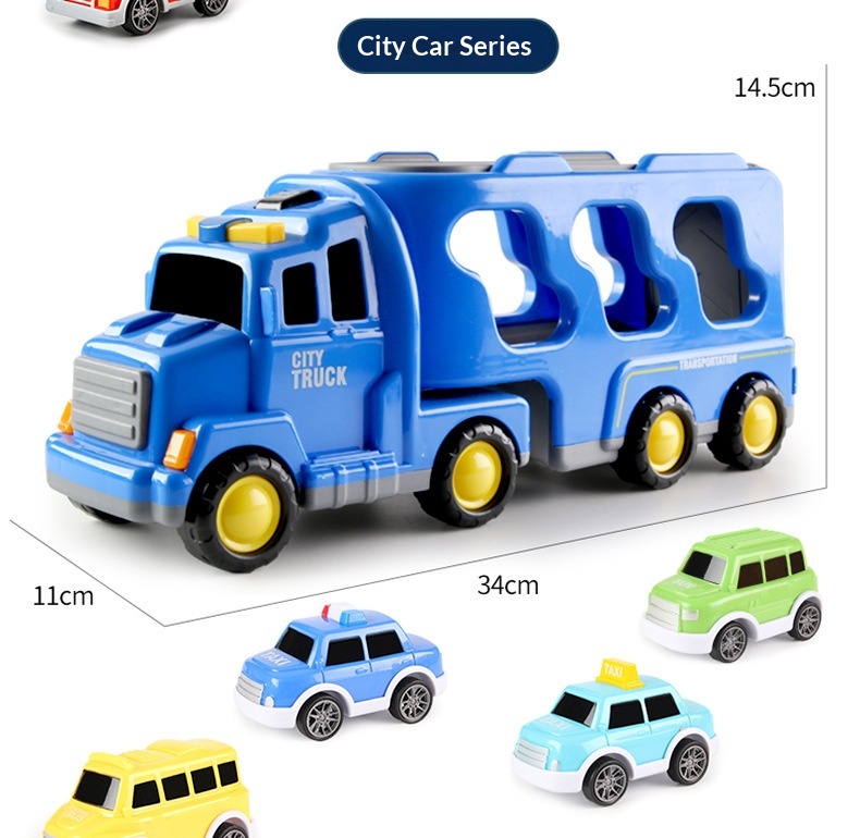 Color: [Black Storage Police Car] 1 large vehicle, 6 small vehicles—color box; [Yellow Storage Engineering Vehicle] 1 large vehicle, 6 small vehicles—color box; [Red Storage Fire Truck] 1 large vehicle, 6 small vehicles—color box; [Blue Storage Sedan] 1 large vehicle, 6 small vehicles—color box.