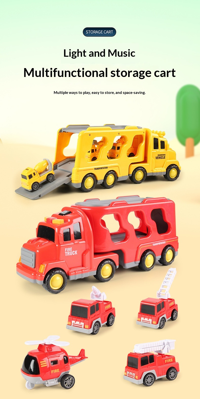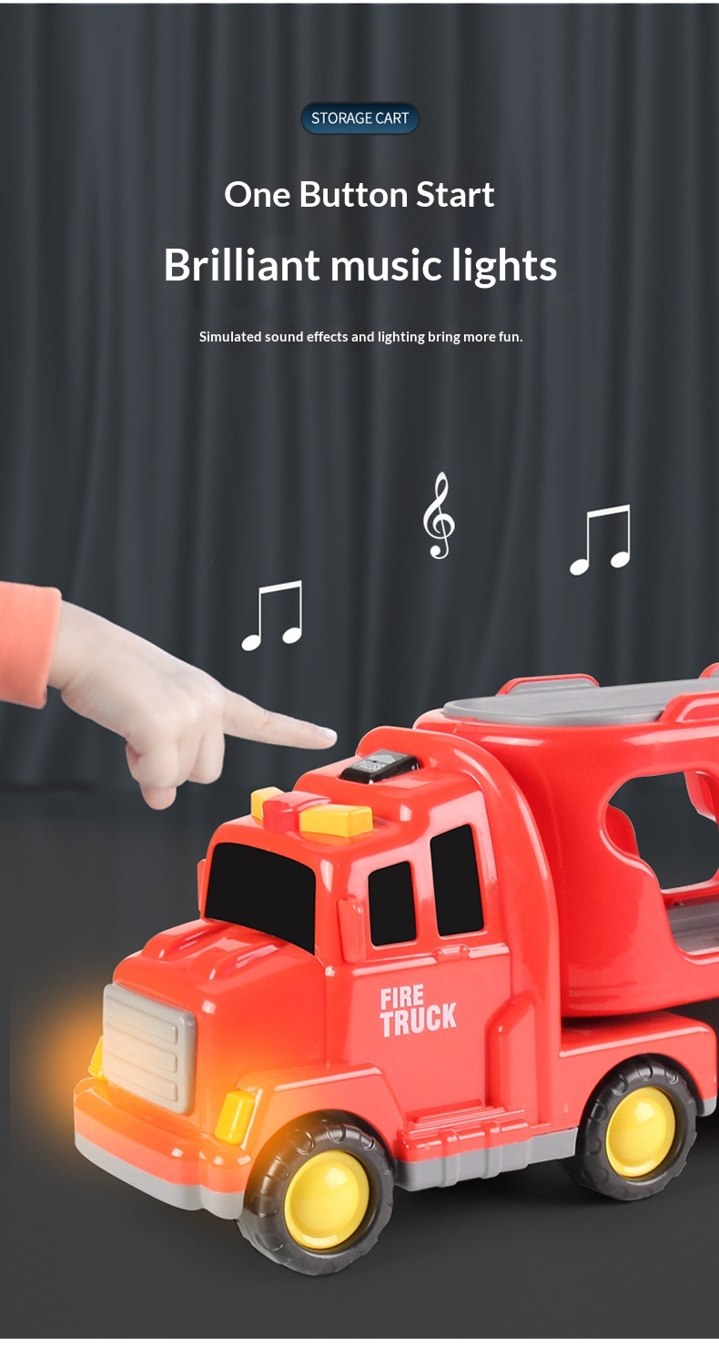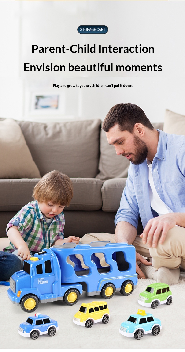 Color: [Black Storage Police Car] 1 large vehicle, 6 small vehicles—color box; [Yellow Storage Engineering Vehicle] 1 large vehicle, 6 small vehicles—color box; [Red Storage Fire Truck] 1 large vehicle, 6 small vehicles—color box; [Blue Storage Sedan] 1 large vehicle, 6 small vehicles—color box.