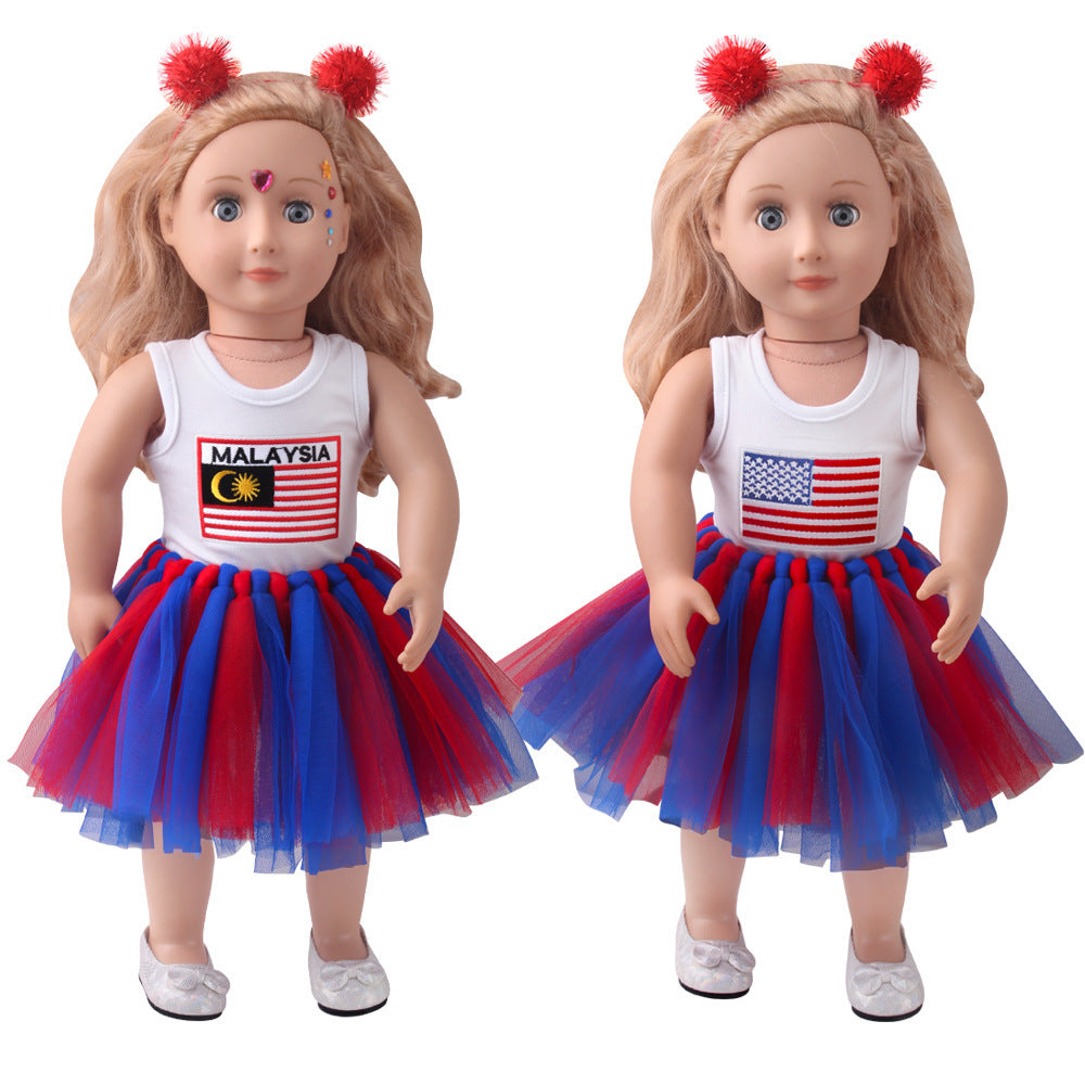 18-inch American Girl Doll Clothes Printed Short Sleeve Handmade Veil Skirt Hair Ball Hair Hoop