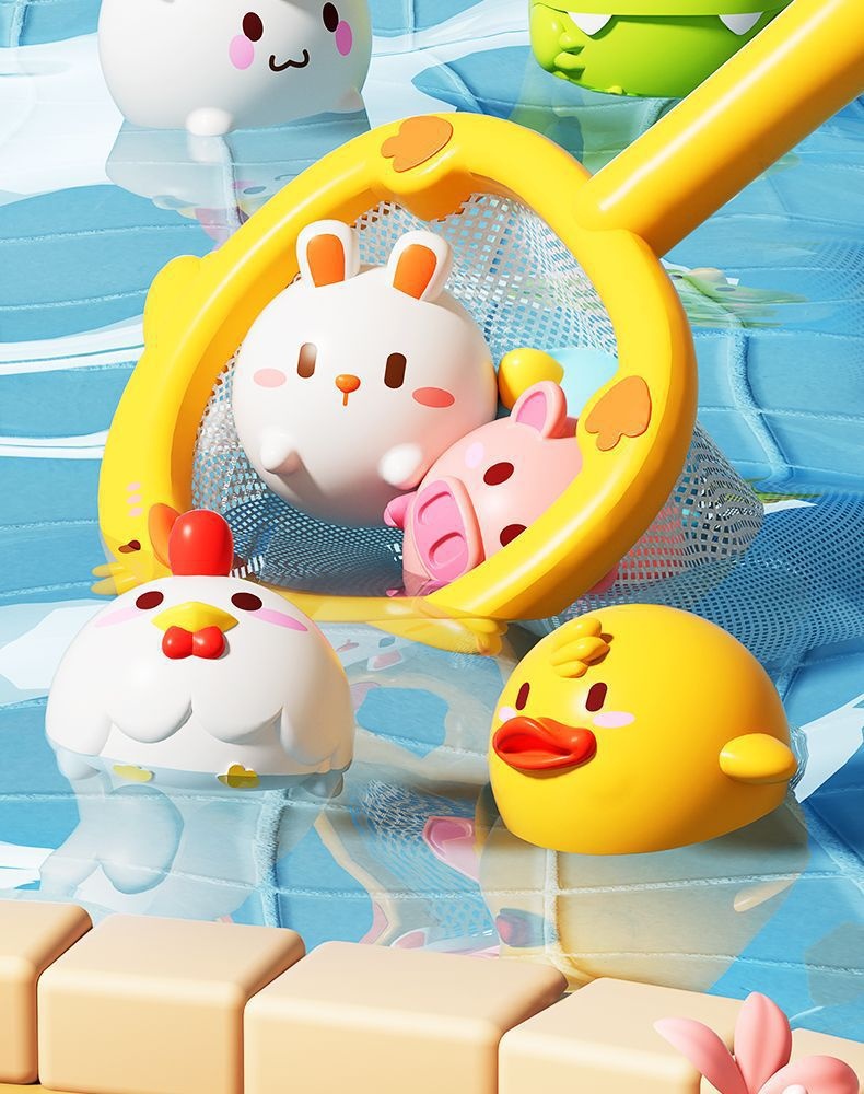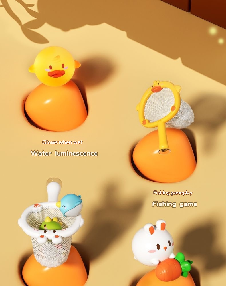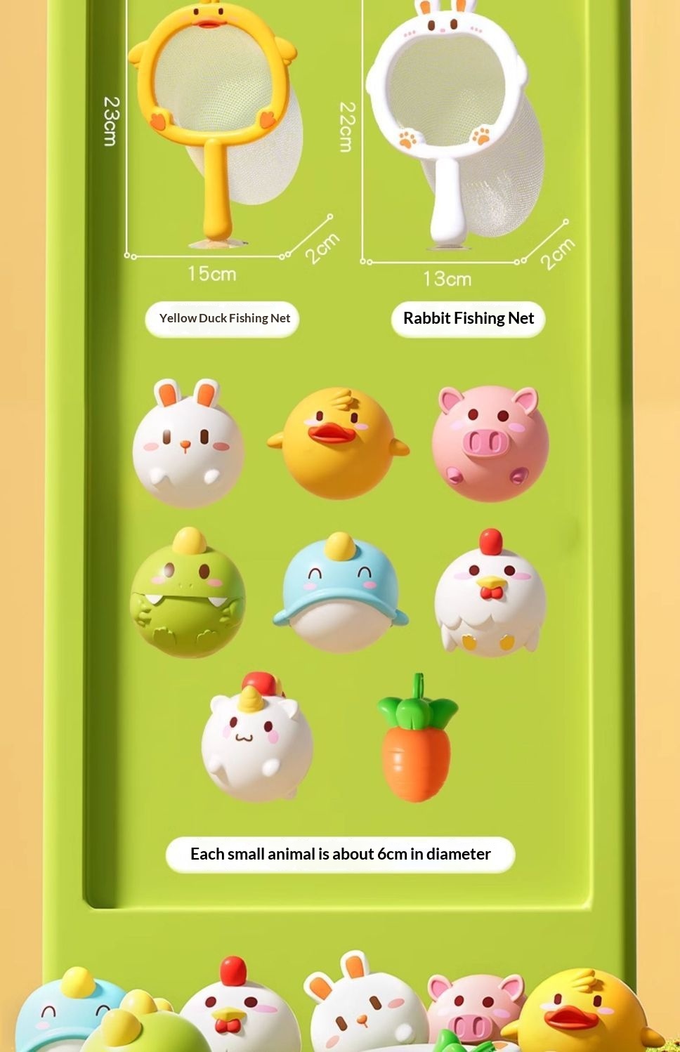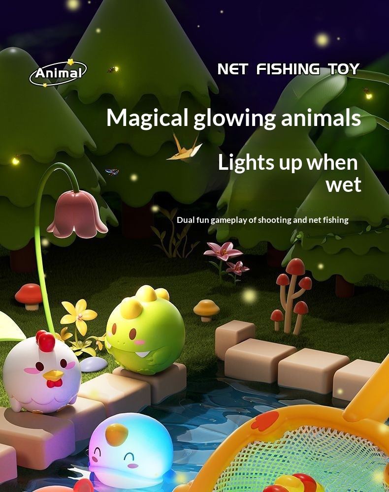 Colors: Rabbit Fishing Net 3-Piece Set [Fishing Net + Glowing Rabbit + 2 Carrots], Rabbit Fishing Net 3-Piece Set [Fishing Net + Glowing Chick, Duck, and Pig], Rabbit Fishing Net 3-Piece Set [Fishing Net + Glowing Rabbit, Whale, and Dinosaur], Rabbit Fishing Net 6-Piece Set [Fishing Net + Complete Set of 6 Glowing Animals]