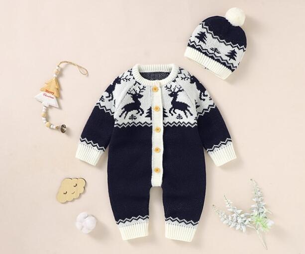 Baby Christmas Elk Knitted One-piece Suit
