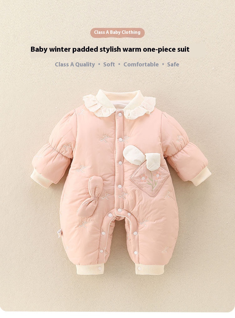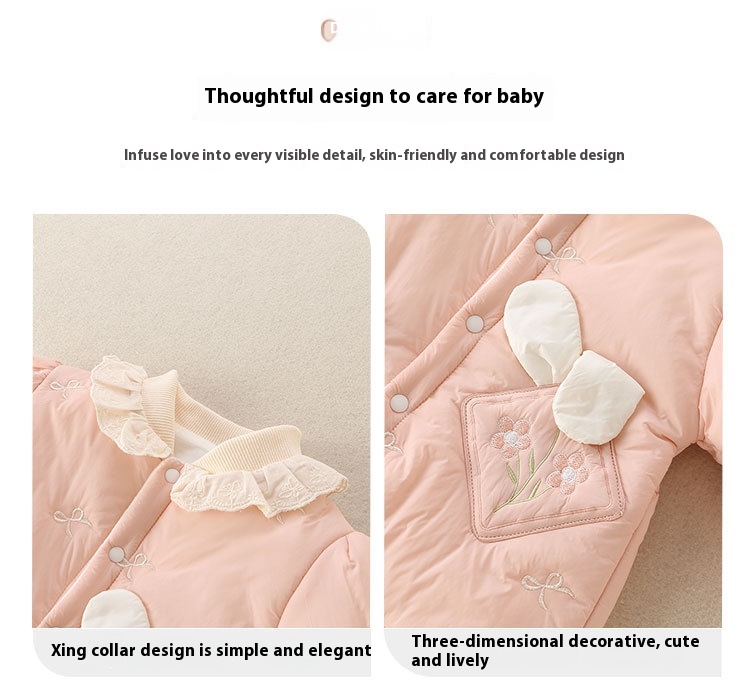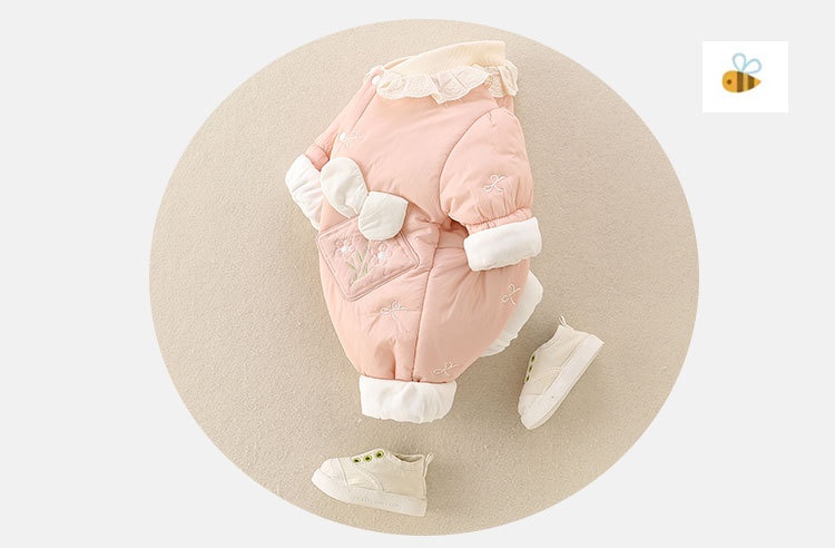 Girls' Baby Cute Jumpsuit Thickened Outer Wear Days Warm In Late Autumn