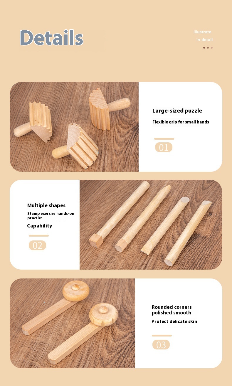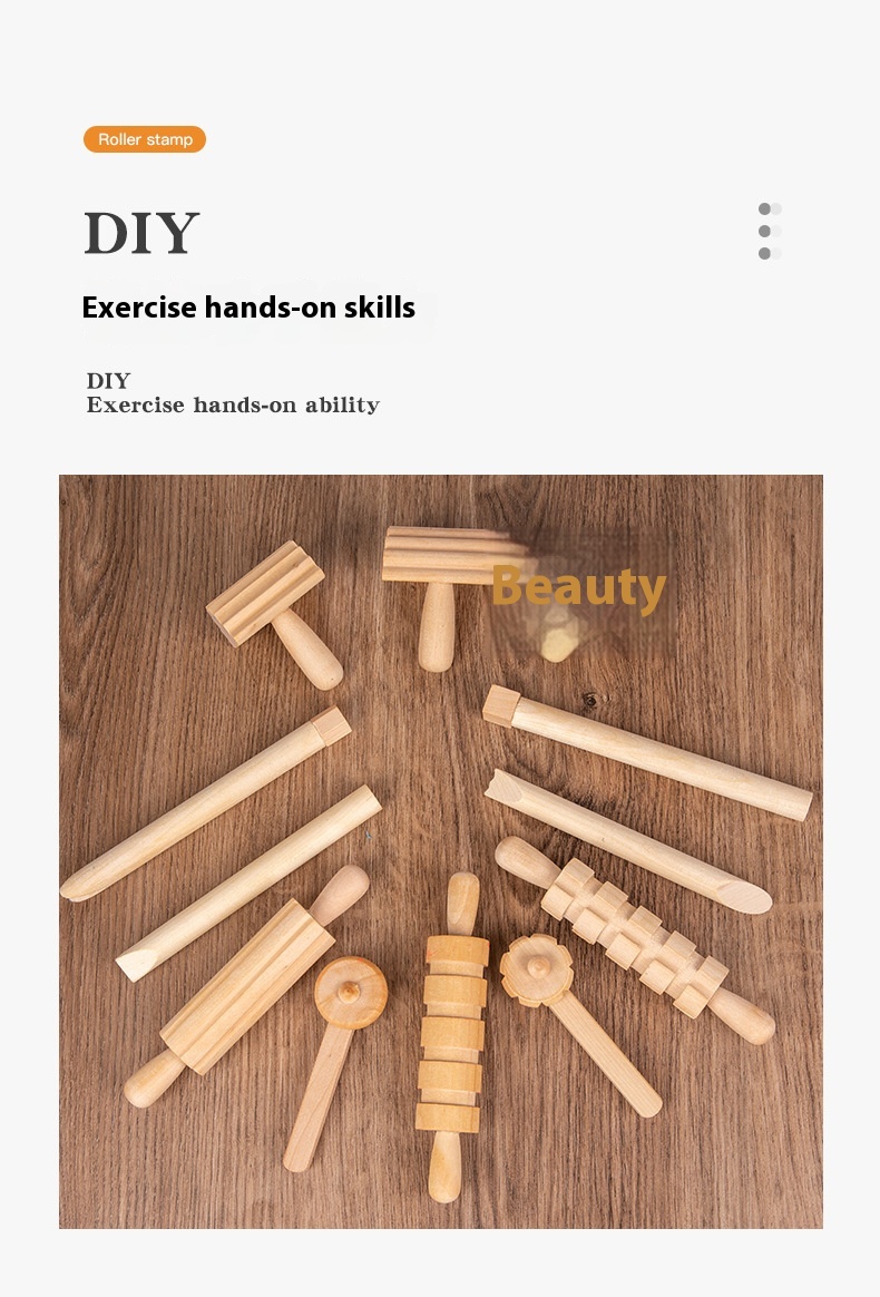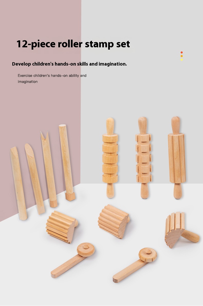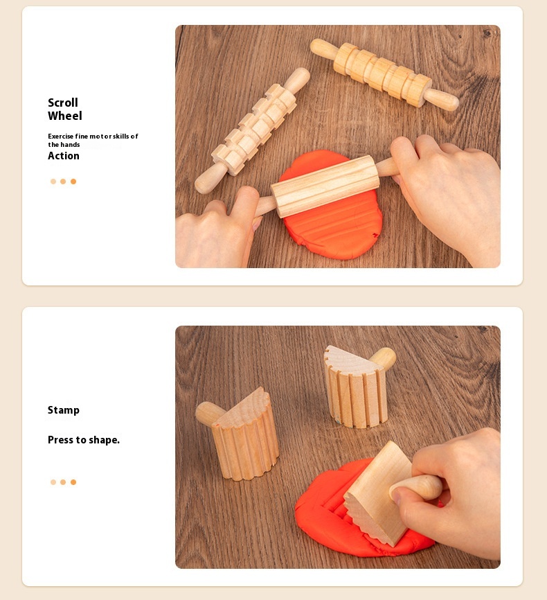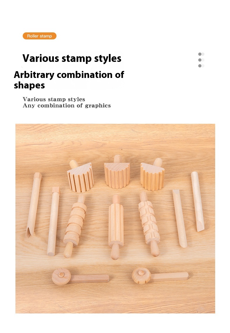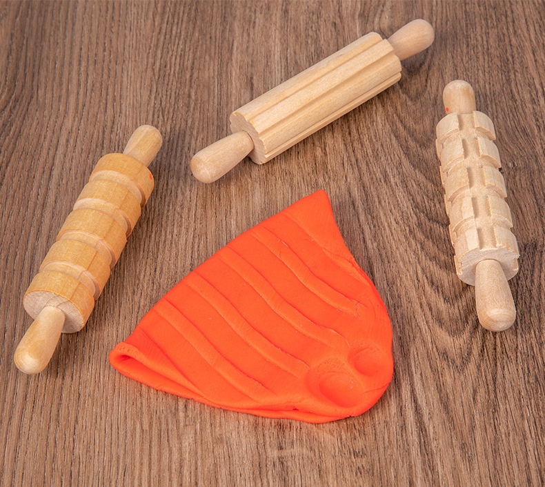 Solid Wood Mini Rolling Pin Rolling Pin Roller Seal Toy Set