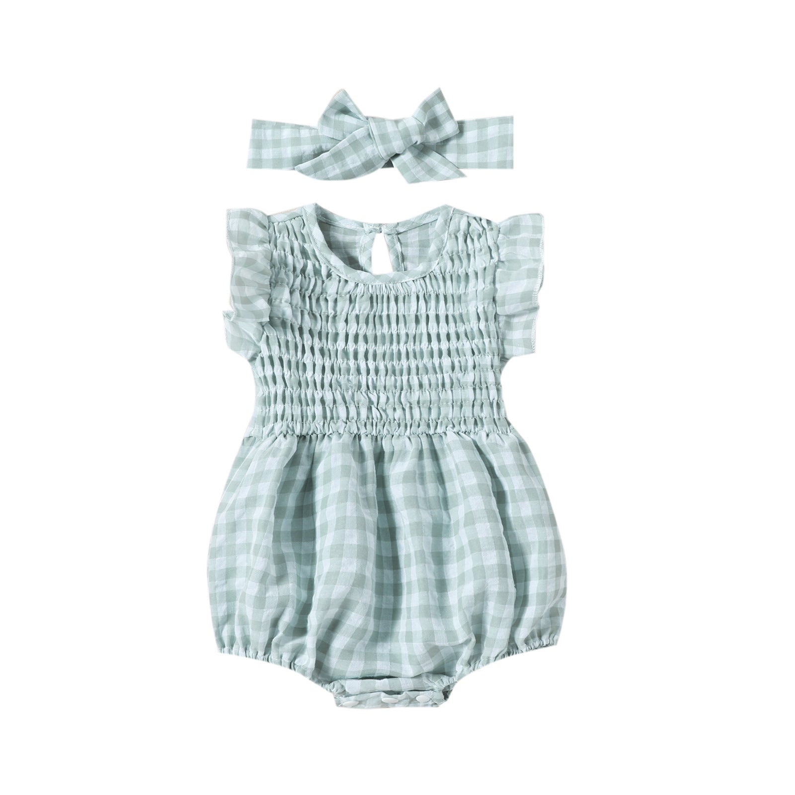 Summer Baby Girl Sweet Plaid Newborn Jumpsuit
