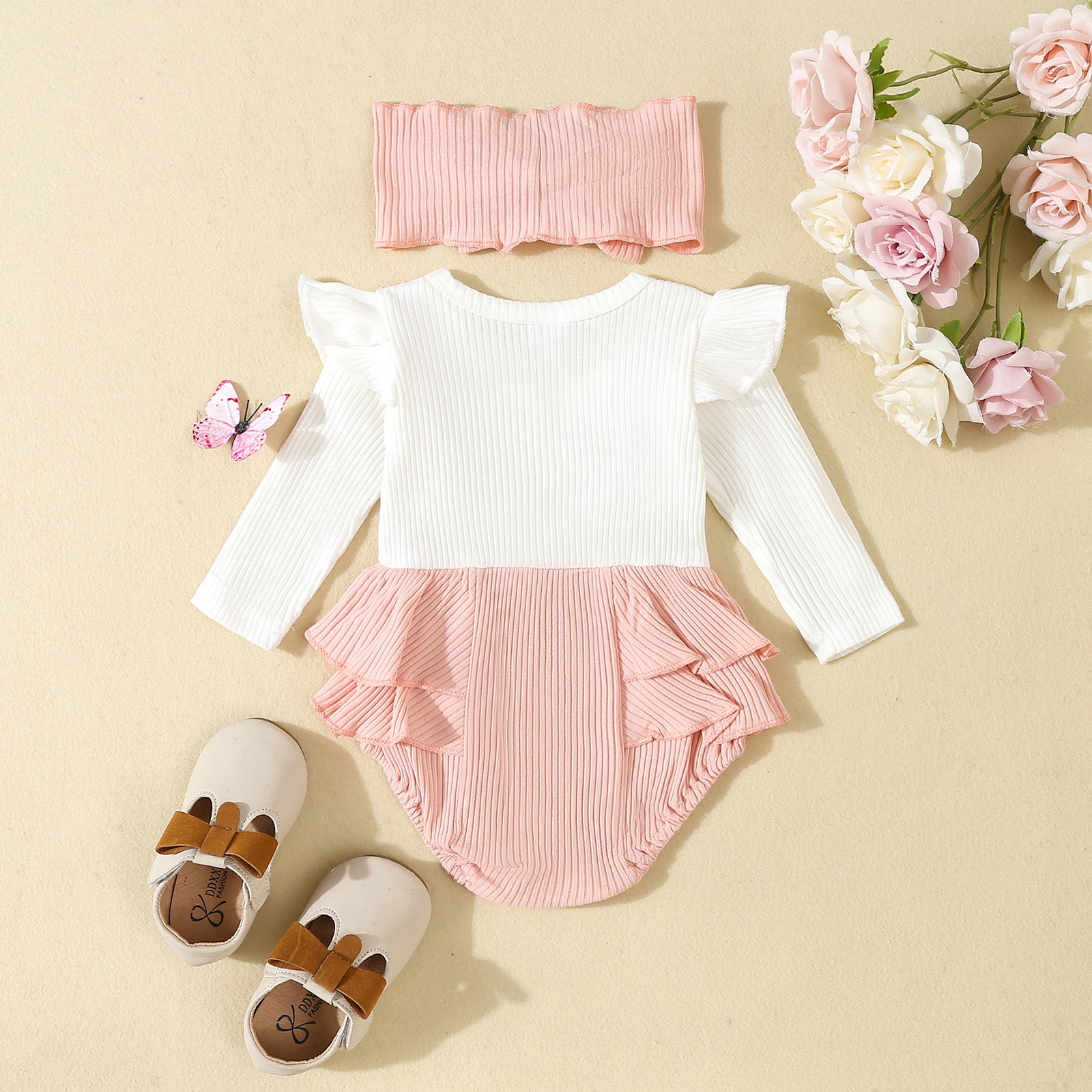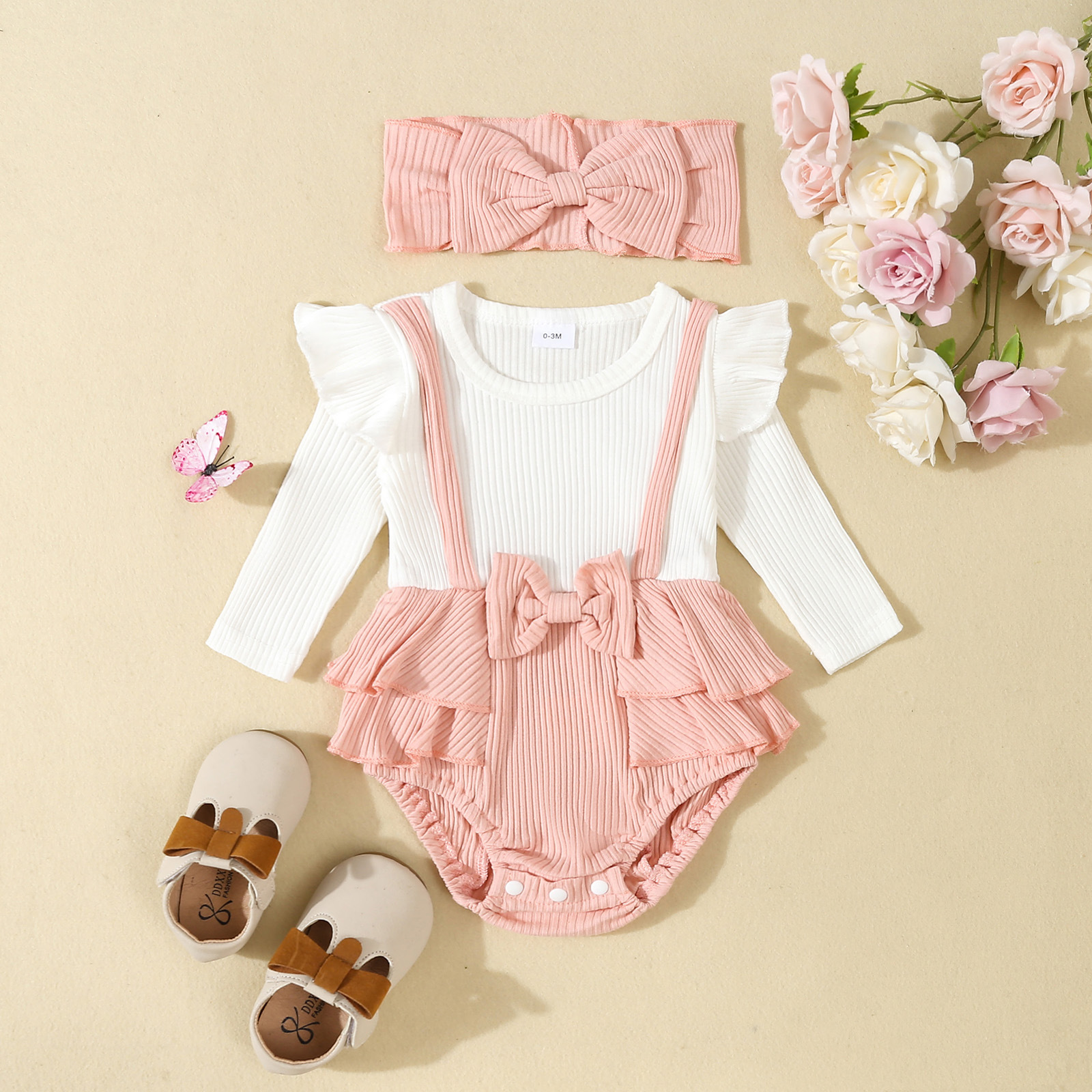 Toddler Flounced Sleeve Shoulder Strap Romper Girls' Spring And Autumn