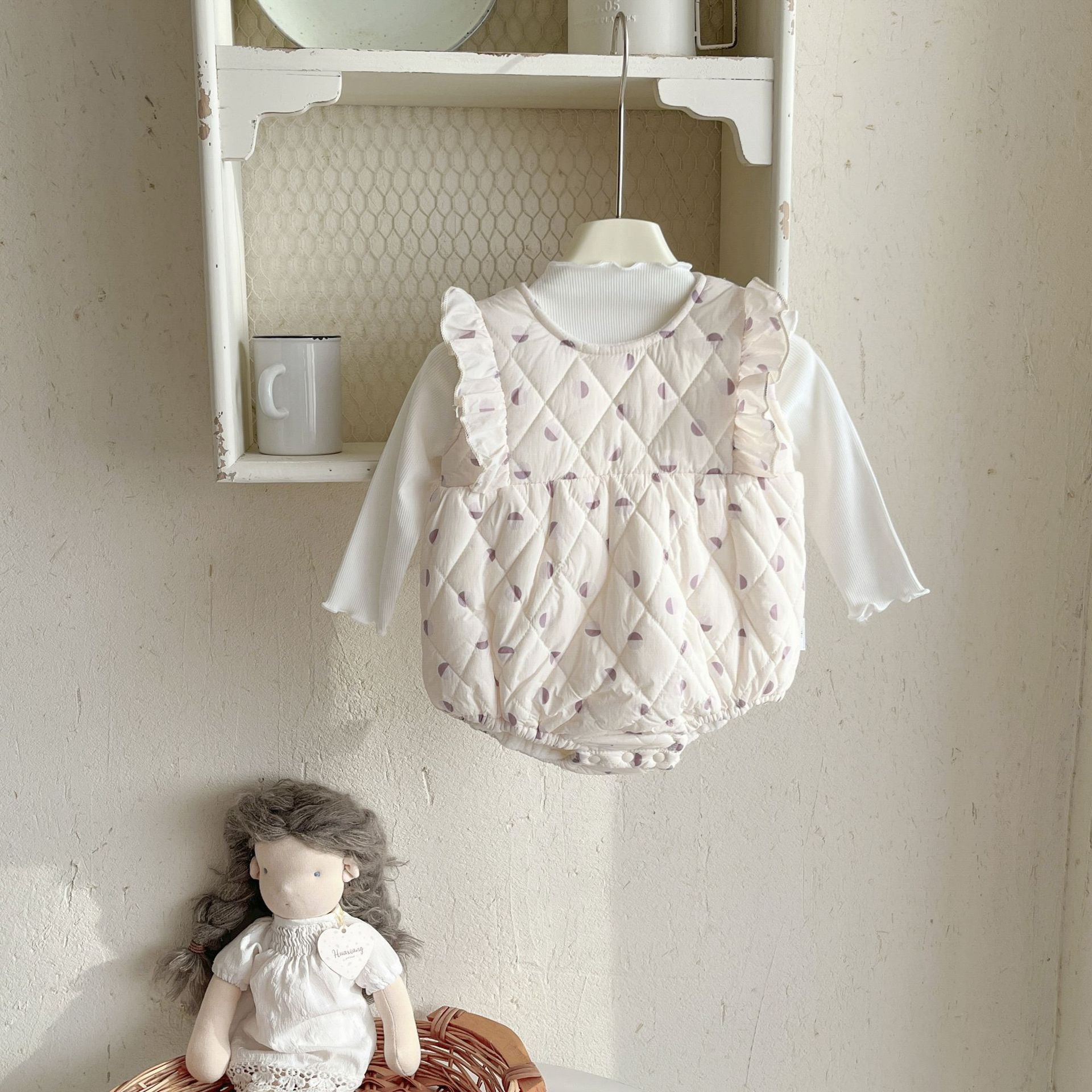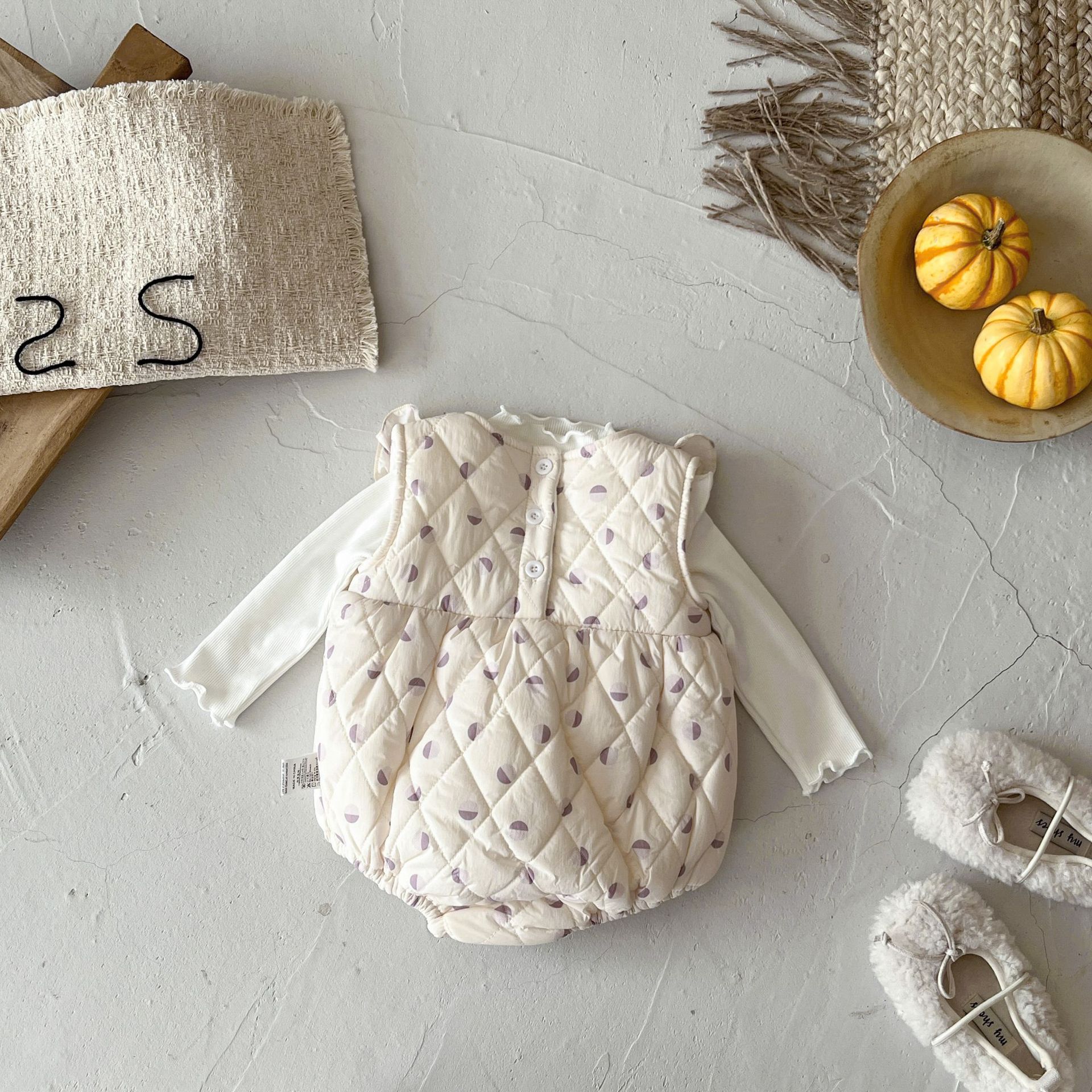 Winter Clothing Infant Girl Dotted Prints Vest Quilted Jumpsuit Romper
