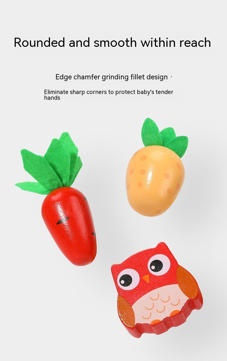 Wooden Farm Animal Car Pulling Radishes Bug Catching Educational Toy